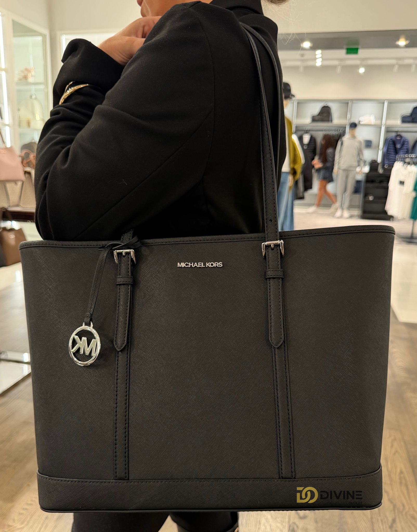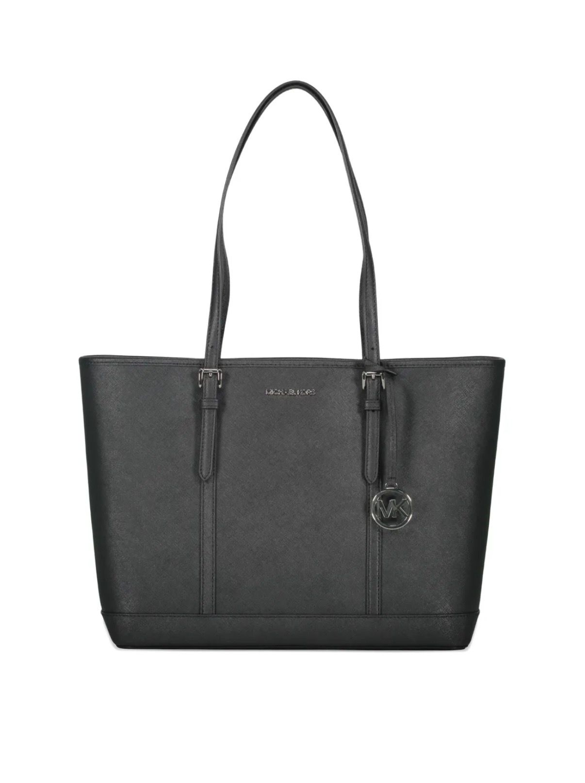 Geanta Michael Kors Jet Set Travel neagra este combinatia perfecta intre eleganta,durabilitate si functionalitate,ideala atat in oras ,cat si in escapde de weekend.Indeplineste cerintele oricarei tinere moderne care apreciaza stilul si utilitatea.Materialul este saffiano cu,cusaturi decorative.Aceasta piele confera geantei o textura usor rigida,rezistenta la zgarieturi si care pastreaza forma geantei in timp,iar accesoriile sunt argintii.Inchiderea este cu fermoar pentru securitate sporita a continutului.Interior generos bine organizat pentru acces facil la lucrurile esentiale.Se potriveste atat cu tinute office cat si cu outfit-uri casual de weekend.