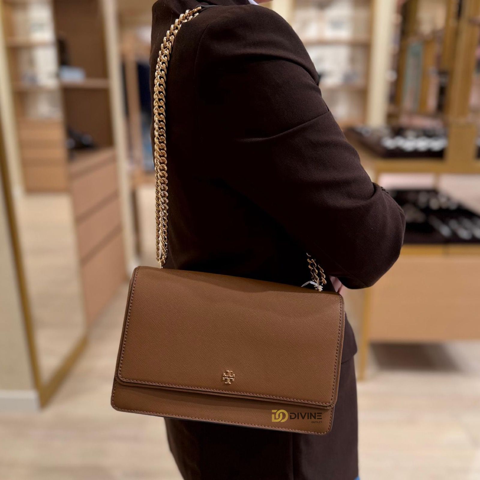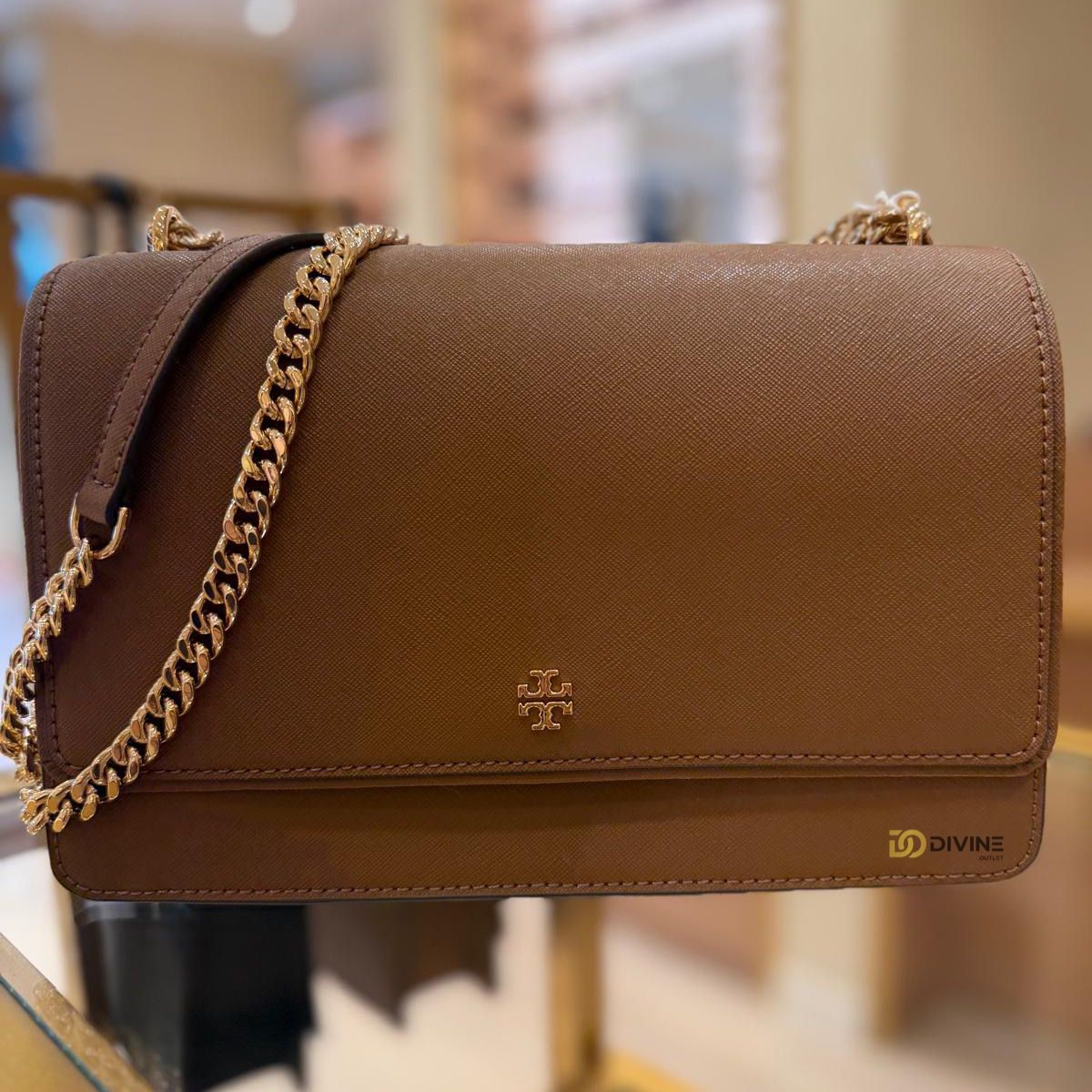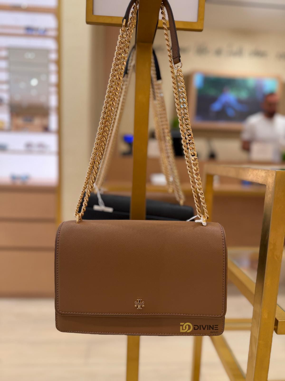 Eleganta pura intr-o forma clasica aceasta geanta Tory Burch este realizata din piele saffiano premium,recunoscuta pentru textura sa rafinata si rezistenta in timp.Accesorizata cu un lant metalic auriu dublu si logo-ul emblematic Tory Burch,emana rafinament si stil.Ideala pentru tinute de zi sau de seara care adauga o nota sofiscata oricarui look.