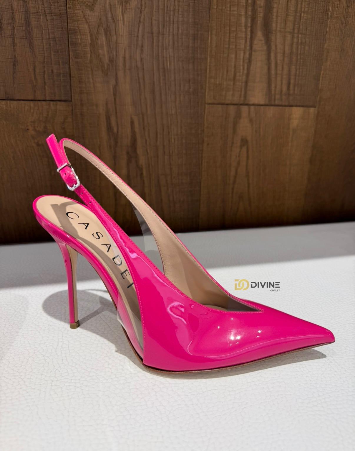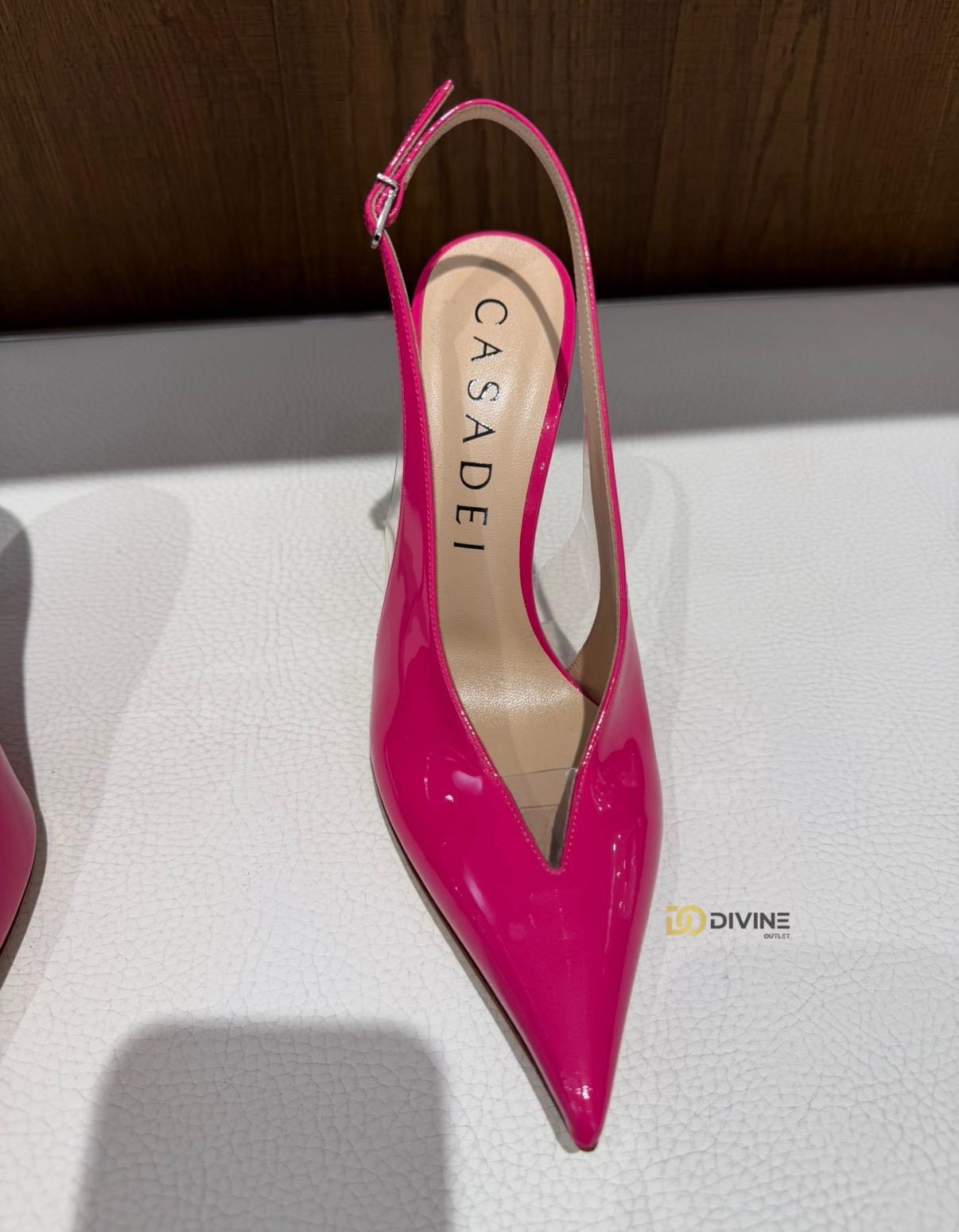 Pantofi Casadei din piele lacuita cu toc subtire de 10 cm -un model elegant si rafinat ce imbina perfect stilul italian cu un strop de extravaganta,ideali pentru un eveniment si aparitii de impact.