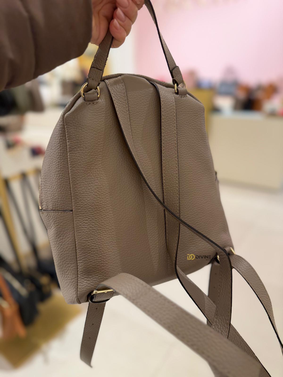 Rucsacul Coccinelle Jen combina eleganta minimalista cu functionalitatea de zi cu zi .Realizat din piele naturala taupe cu textura fina modelul se remarca prin liniile curate si designul modern.Interiorul este bine structurat oferind spatiu pentru esentialele tale,iar buzunarele practice adauga un plus de organizare.Bretelele reglabile asigura confort la purtare ,iar detaliile metalice aurii discrete confera un aspect rafinat.Un rucsac chic si versatil ideal pentru femeia activa si stilata.