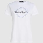 Acest tricou de la Karl Lagerfeld garanteaza o croiala mulata 100% bumbac care iti pune in valoare silueta fara a o constramge,ideal pentru utilizarea de zi cu zi.Designul sau elegant prezinta logo-ul circular emblematical brandului,adaugand o nota grafica subtila tinutei tale.
